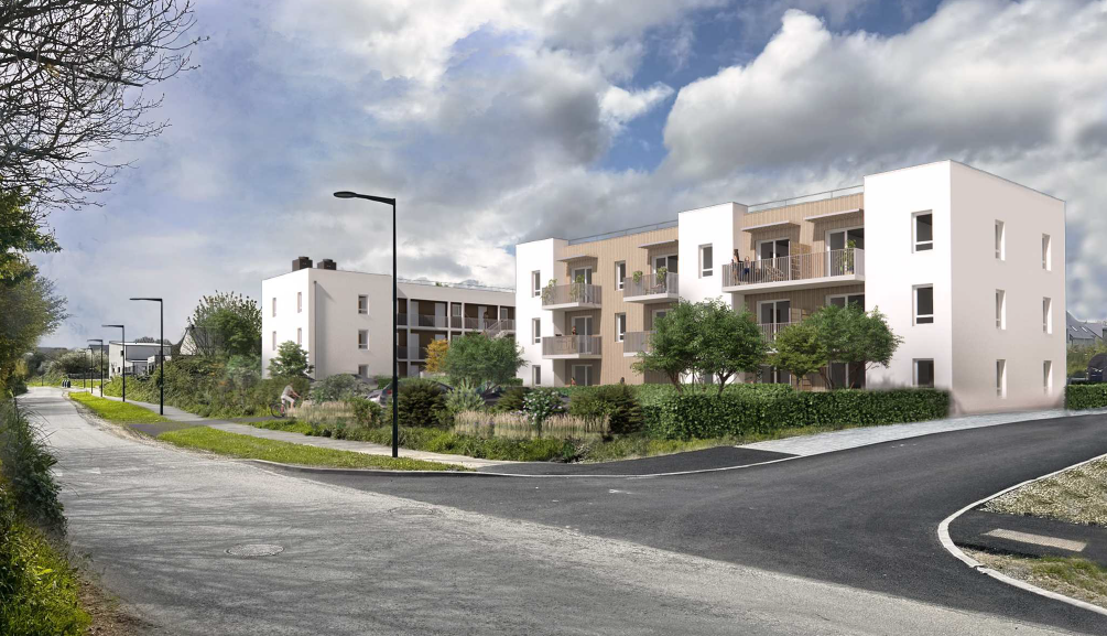 La résidence se compose de trois immeubles modernes de deux étages, regroupant 36 logements au total. Elle propose des T2 et T3 dotés de balcons ou de terrasses, tous parfaitement agencés et équipés de double vitrage PVC et de volets roulants pour un confort optimal. Le chauffage et la production d’eau chaude sont assurés par une pompe à chaleur collective, complétés par un thermostat individuel permettant une gestion précise de la consommation énergétique. Grâce à une construction durable en Bio’bric et à un bardage biosourcé recyclable, la résidence atteint de hautes performances énergétiques, conformes à la RE 2020 – Seuil 2028.