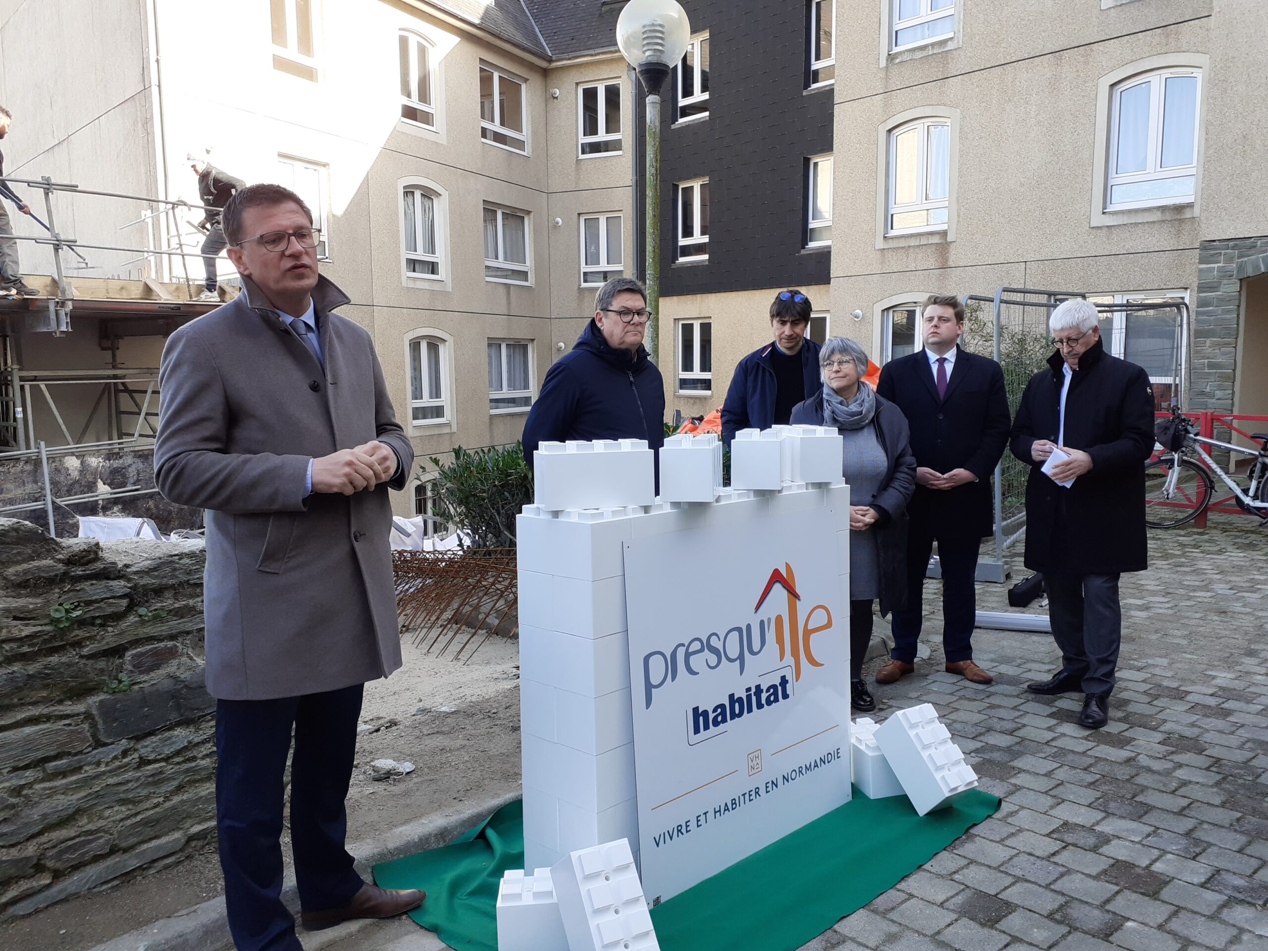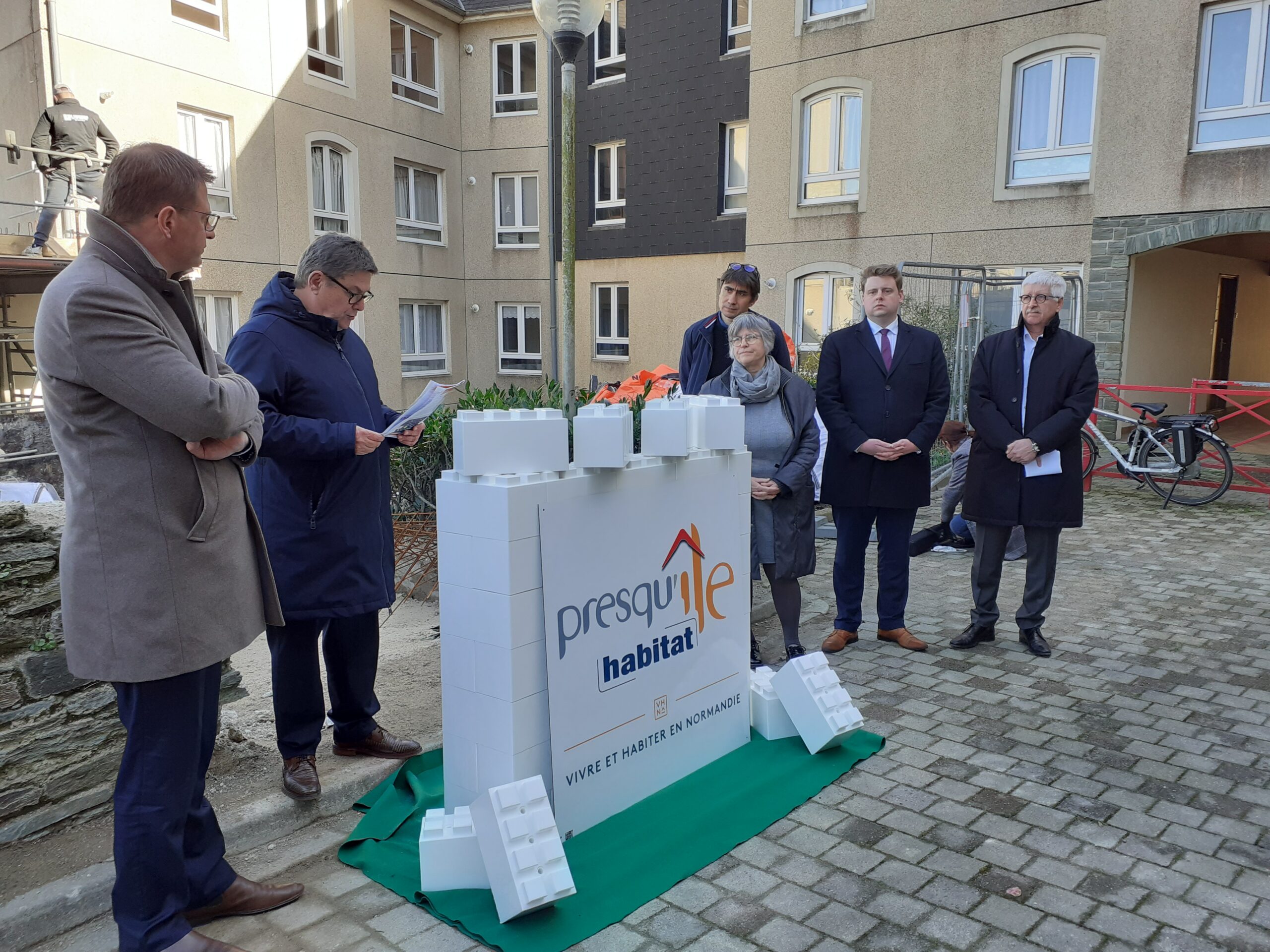 À cette occasion, Gilbert LEPOITTEVIN, Président de Presqu’île Habitat, a tenu à remercier lors de son discours nos partenaires pour leur présence et leur soutien depuis les débuts de l’opération : Benoît ARRIVE, Maire de la Ville de Cherbourg-en-Cotentin, Martine GRUNEWALD, Vice-Présidente de la Communauté d’agglomération du Cotentin en charge de l’Habitat, Alain PIQUET, Président du Comité Régional Action Logement Normandie, ainsi que tous les participants à l’événement.